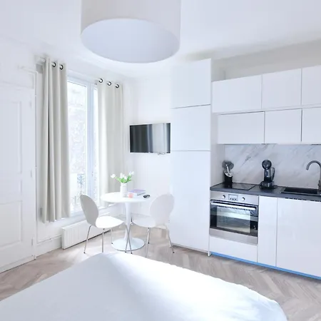 Studio 1 Piece 20 M2アパ-トメントアパ-トメントには,器具でいっぱいの台所,コ-ヒ-/紅茶メ-カ-,テレビ と衛星放送チャンネルの薄型テレビ付きの客室があります. アパ-トメントパリ シャルル・ド・ゴ-ル国際空港から車で23分,パリの19区地区に位置しています.